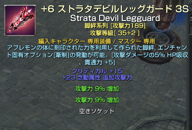 脚はチキンさんにエンチャ代行してもらって、それよりいいのがつかないので保留にしてます。