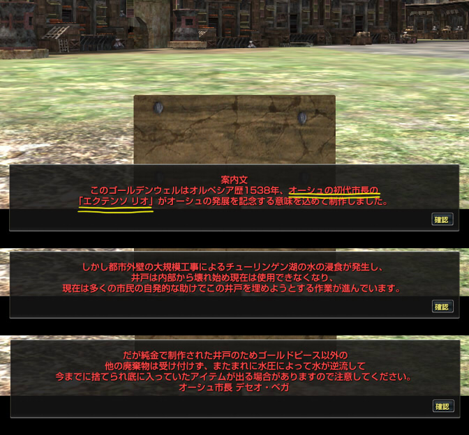 これを見ると分かる通り、初期の設定ではオーシュの初代市長は「エクテンソ・リオ」だったはず…なんです、多分。