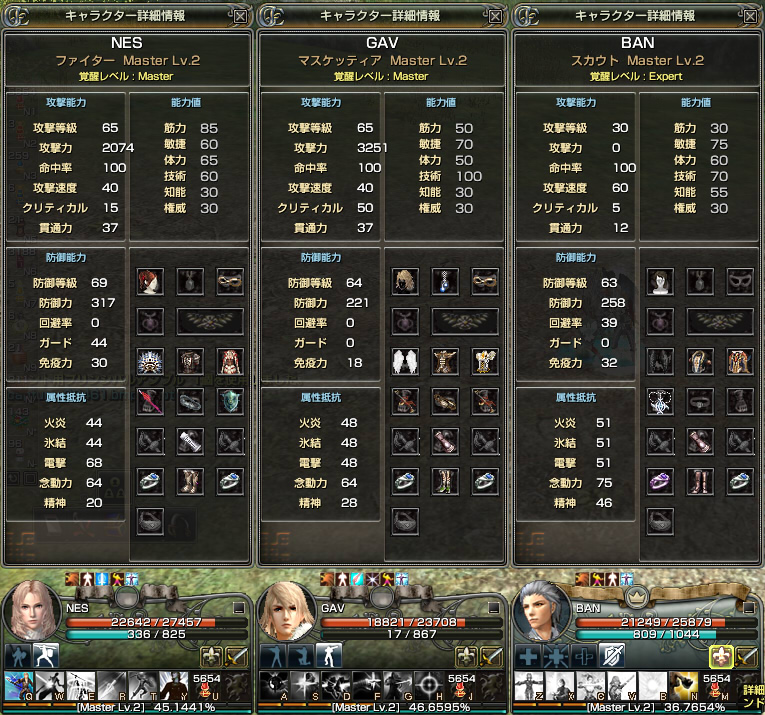 ファイ子にミリー(Lv10)・マス男はシューティング(Lv10)とコンセ(Lv12)